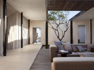 Designed by the award-winning architectural firm WOHA, Alila Villas Uluwatu features contemporary Balinese-inspired villas that seamlessly blend with their natural surroundings. Each luxurious villa is a private haven, offering generous space, a private swimming pool, and an exclusive cabana, ensuring ultimate seclusion and relaxation. The eco-friendly resort incorporates sustainable design principles, with flat lava rock roofs and bamboo ceilings that encourage natural ventilation and a harmonious connection with nature.