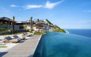Accommodations pair Balinese serenity with modern comforts: 28 sky suites and penthouses and 75 cliff pool villas are set among lush greenery for privacy, each supported by a dedicated Guest Experience Maker. Signature options such as The Retreat and The Presidential Villa provide expansive living spaces in standout cliff-edge settings.